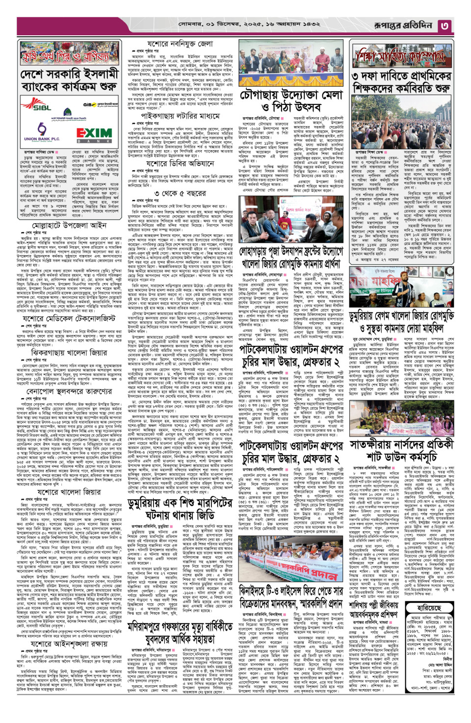 সোমবার , ০১ ডিসেম্বর২০২৫ , ১৬ অগ্রহায়ণ ১৪৩২